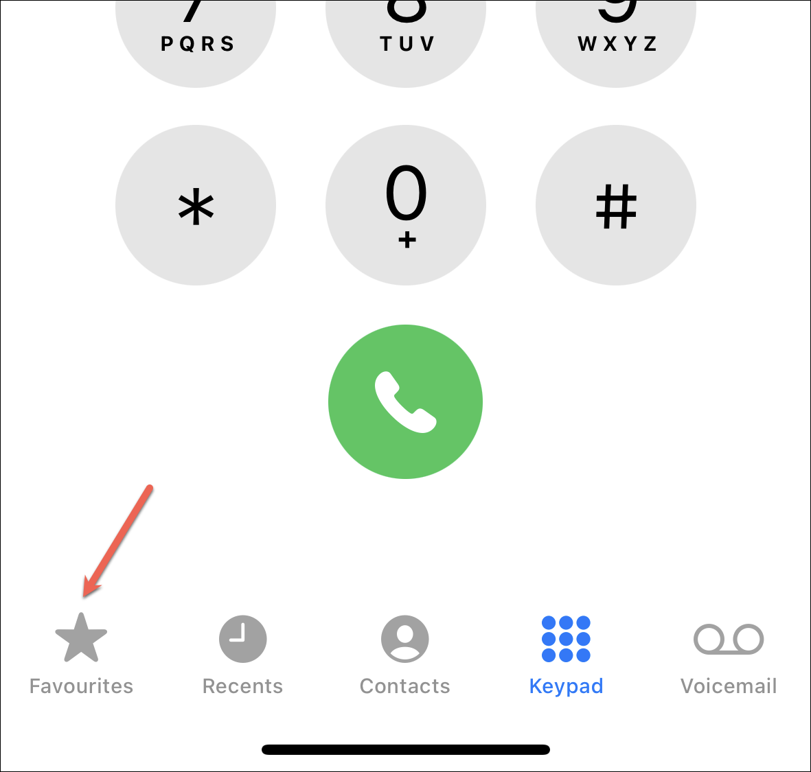 Open the ‘Phone’ app on your iPhone. Then, go to the ‘Favorites’ tab from the bottom of the screen.