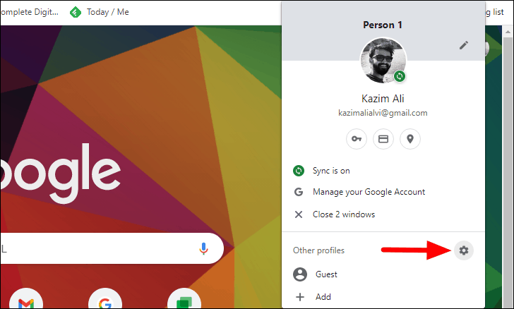 The Chrome profile menu will open up. Next, click on the ‘Settings’ icon next to the ‘Other profiles’ label.