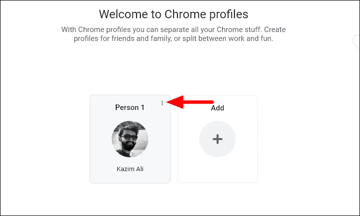 All the profiles you created in Chrome will be listed here. Locate the one you want to remove and click on the ellipsis at the top-right corner of the profile.