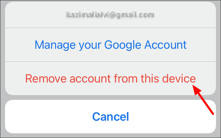 Next, tap on the ‘Remove account from this device’ option in the box that pops up at the bottom of the screen.