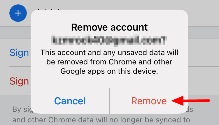 Finally, tap on ‘Remove’ in the confirmation box that pops up. All the saved data for this account will be removed if a backup has not been created.