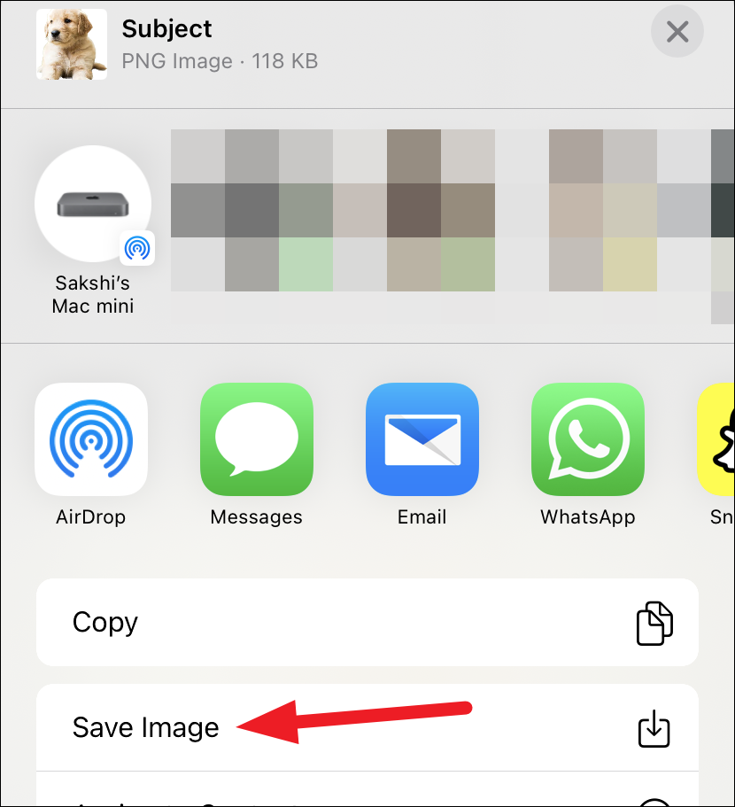 From the share sheet, tap ‘Save Image’ to save the isolated subject to your camera roll. And voila! You have successfully removed the background of an image in less than a second. iPhone also lets you directly share it to any other app from the share sheet.