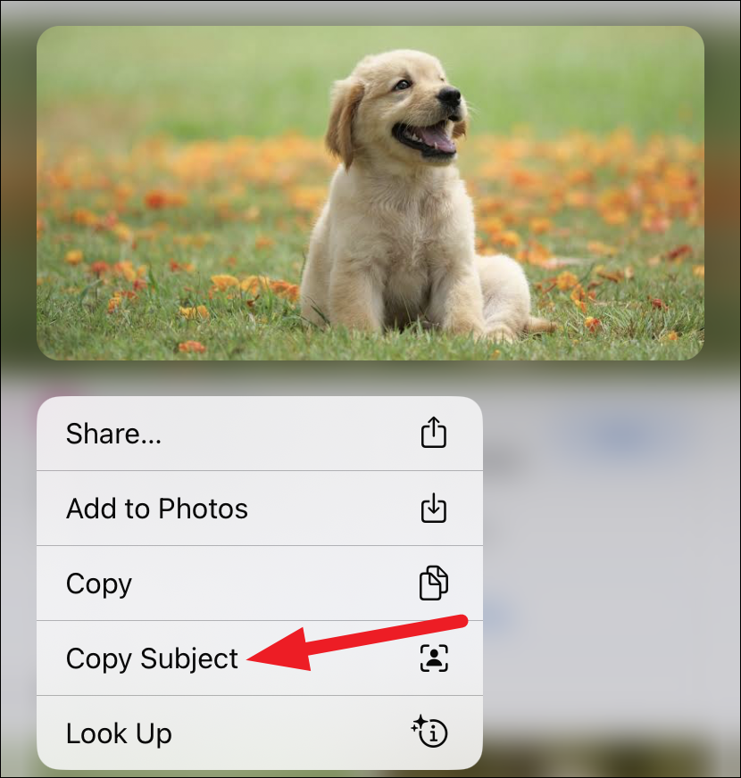 If the photo is open on a webpage in Safari, even then you can copy only the subject. Tap and hold the photo until a context menu appears. Then, tap the option for ‘Copy Subject’ from the menu.