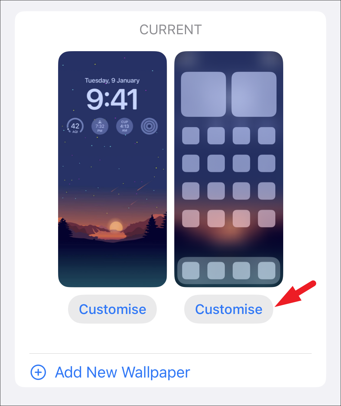 - Tap on the 'Customise' button under the Home Screen icon to access the customization options.