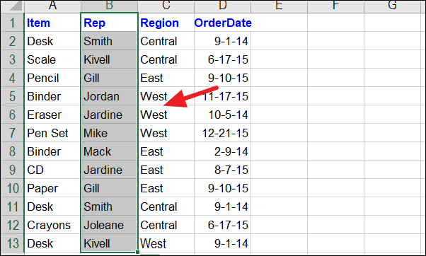 Step 1: Select the range of cells where you want to identify duplicate values. This can be specific columns, rows, or the entire worksheet. In this example, we'll check for duplicate names in the "Representatives" column.