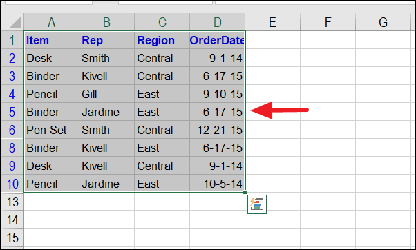 Step 1: Select the dataset from which you want to remove duplicate entries. This can be a specific range of cells or any cell within your data.