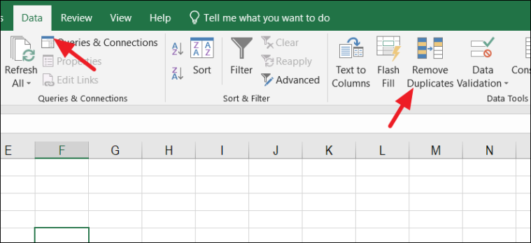 Step 2: Navigate to the Data tab on the Excel ribbon. In the Data Tools group, click on Remove Duplicates.