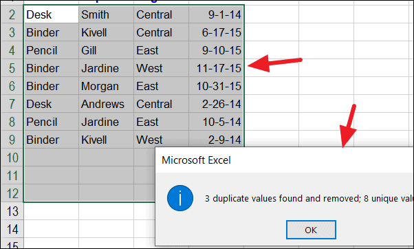 Removing Duplicates Using the Remove Duplicates Feature