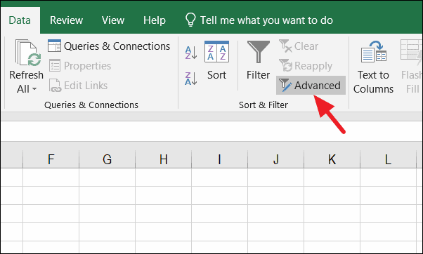 Step 2: Go to the Data tab and click on Advanced in the Sort & Filter group.