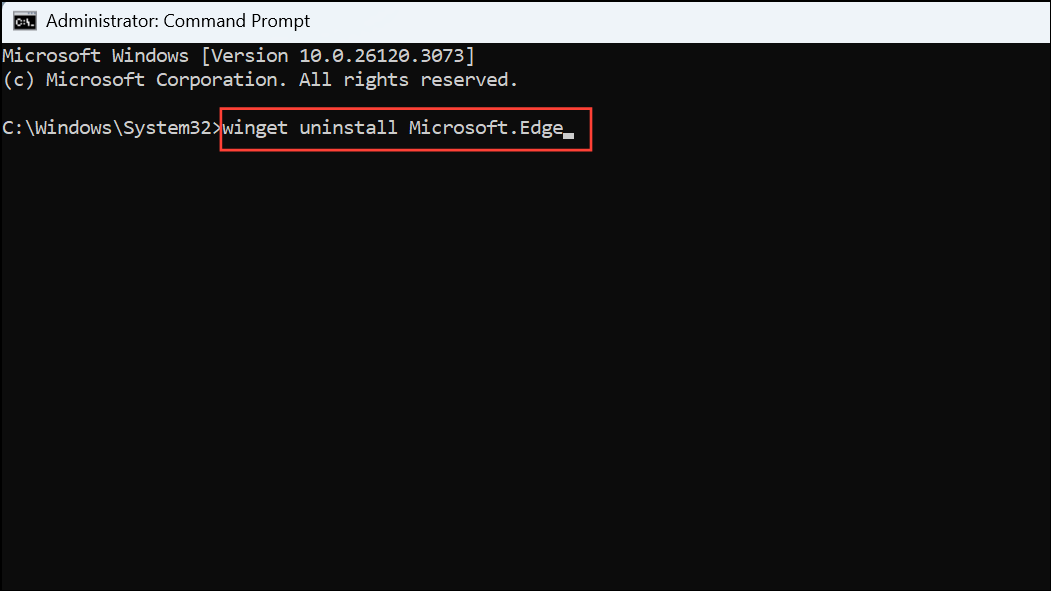 This command uses Winget, Microsoft's official package manager, to remove Edge from your system. Note that this method may not completely remove all Edge components, but it will uninstall the main application.