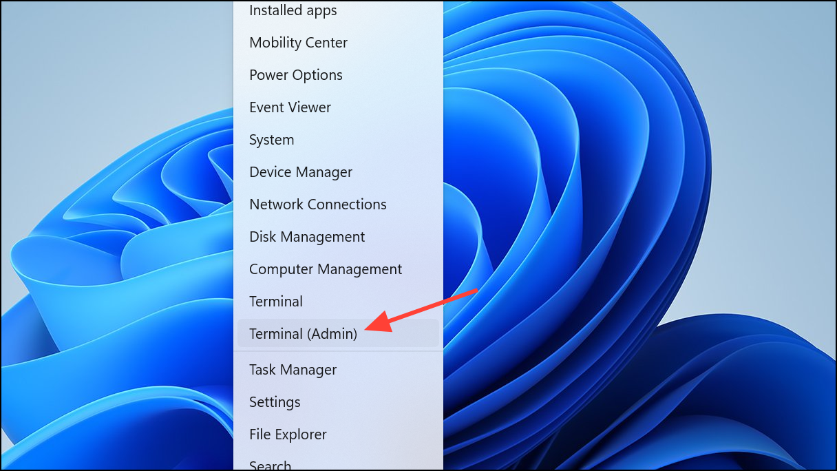 Step 1: Open PowerShell as an administrator by right-clicking the Start button and selecting "Windows Terminal (Admin)" or "PowerShell (Admin)."