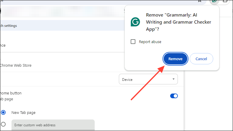- Click the 'Remove From Chrome' option to remove Grammarly from the browser.
