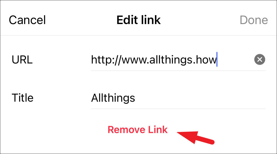 Next, tap on the ‘Remove link’ option from the overlay menu. This will bring an alert to your screen.