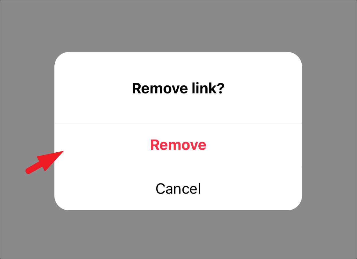 Next, tap on the ‘Remove link’ option. This will bring an alert to your screen.