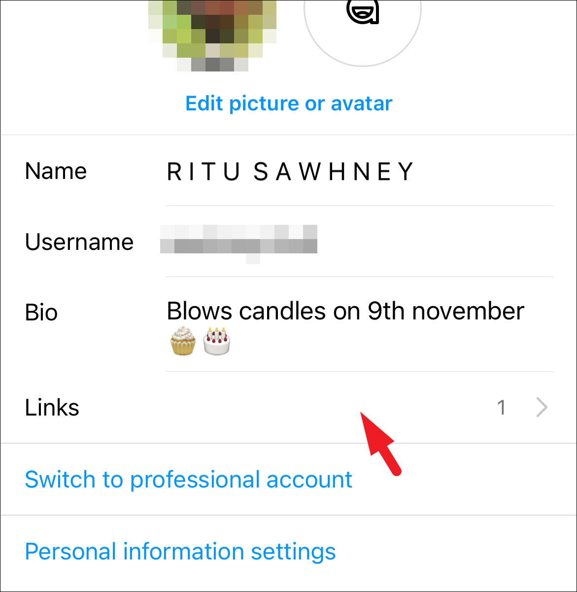If you have a link to another profile in your Instagram Bio, simply tap the ‘Bio’ field and delete the profile link. To remove a URL link, tap on the ‘Links’ option.