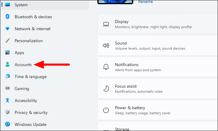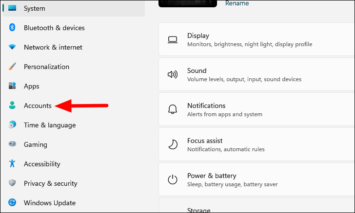 Step 2: Go to the Accounts tab on the left pane.