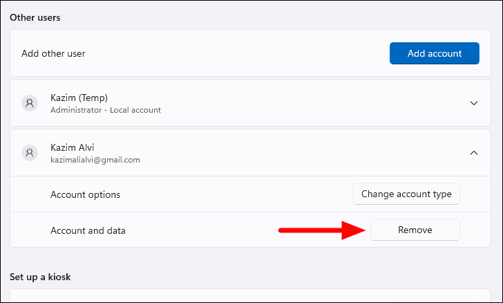The Microsoft account will now be removed from your Windows 11 computer.