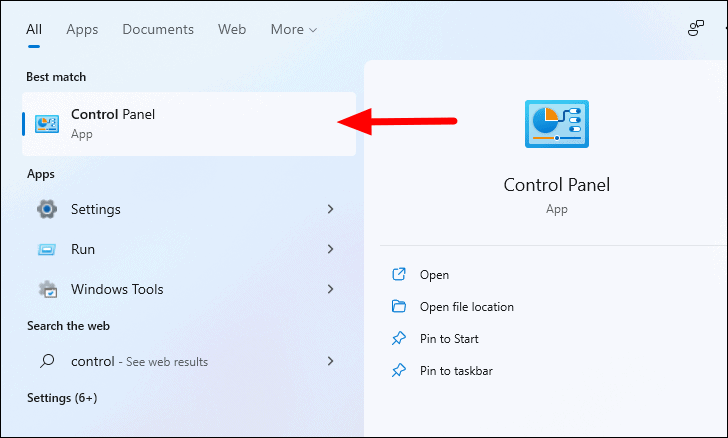 Step 1: Open the Control Panel by searching for it in the Start Menu.