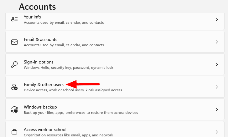 Step 3: Click on Family & other users or Other users on the right side.