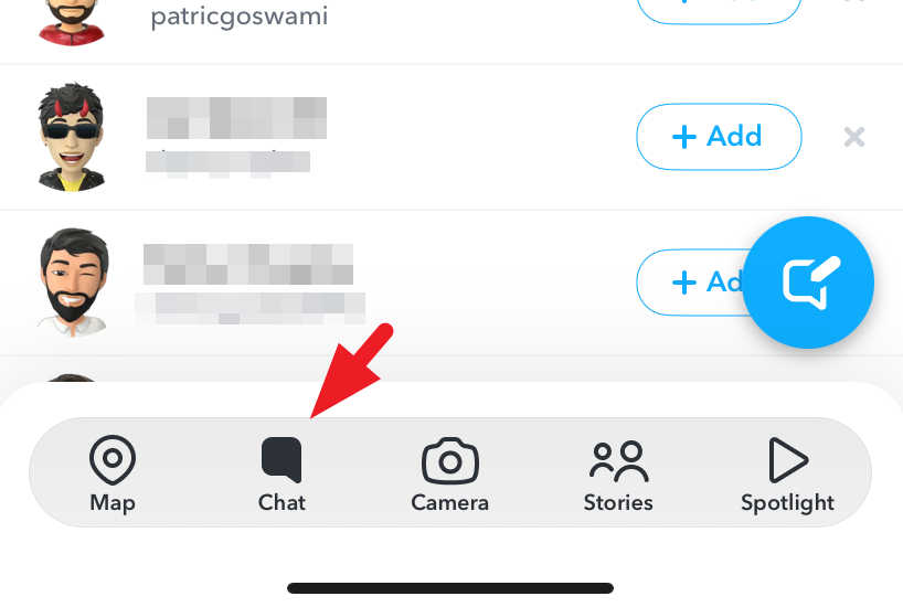 First, launch Snapchat on your device and tap on the 'Chat' tab from the bottom of the screen.