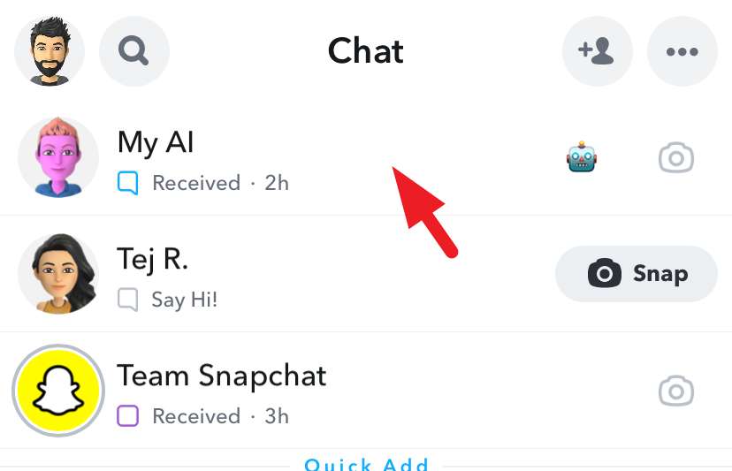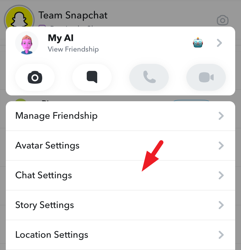 After that, tap and hold on 'My AI' till the overlay menu appears.
