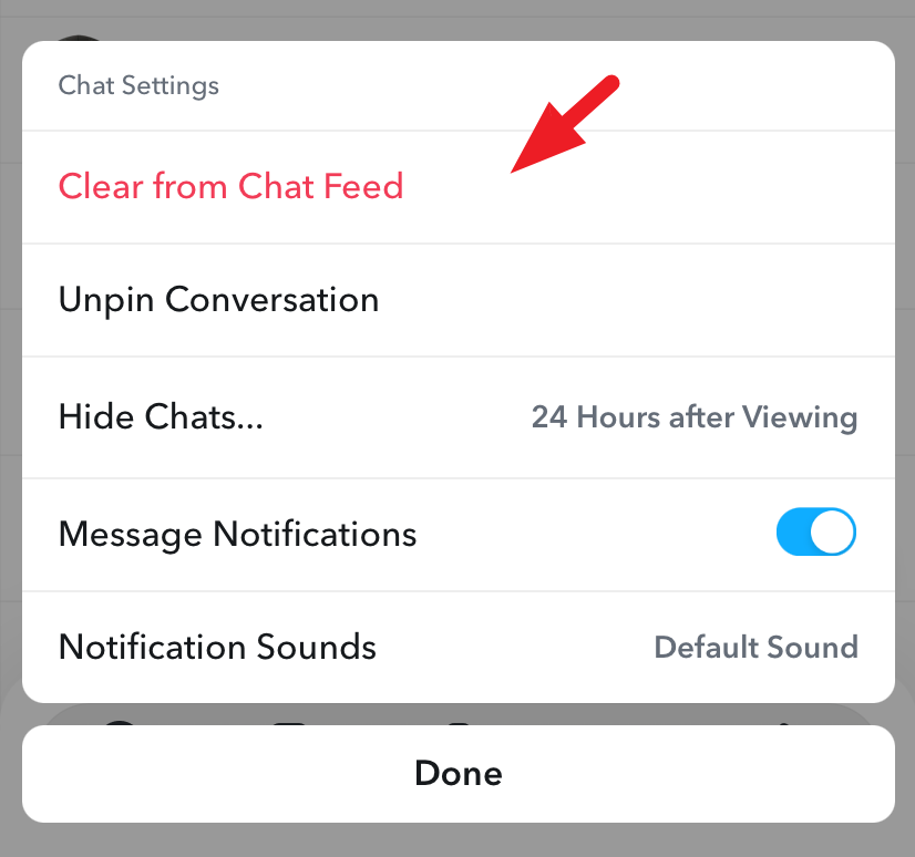 Afterward, tap on 'Unpin Conversation'. Next, tap on the 'Clear from Chat Feed' option.
