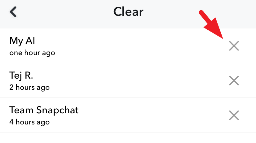 Now, tap 'Clear' to remove 'My AI' from the chat feed.