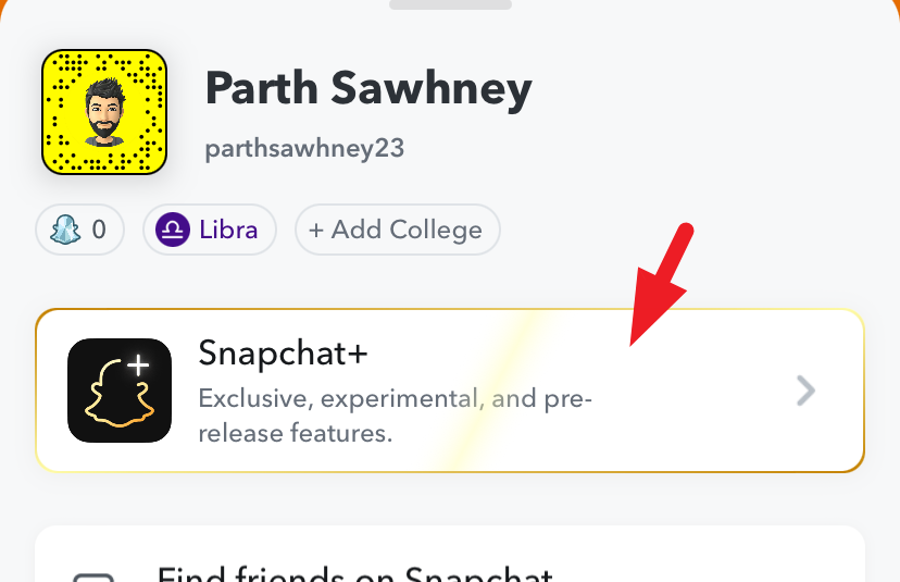 Next, tap on the 'Snapchat+' tile to proceed.