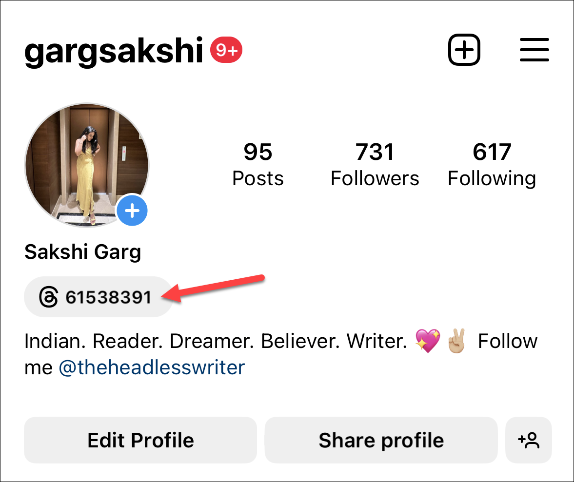 Your Insta profile will appear. You can find the Threads badge under your username. Tap on it.