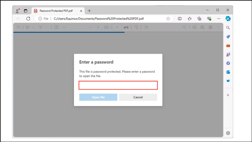 - Open the PDF document from which you want to remove the password using a browser like Chrome or Edge.