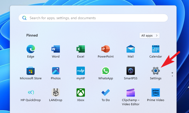 Go to the Start Menu and click on the ‘Settings’ icon.