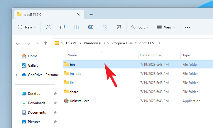 Navigate to the QPDF installation directory. If you didn't change it during installation, it should be in the ‘Program Files’ folder on your system drive.