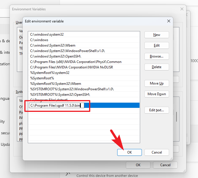 After installing QPDF, you need to set the environment variable so your system recognizes QPDF commands.