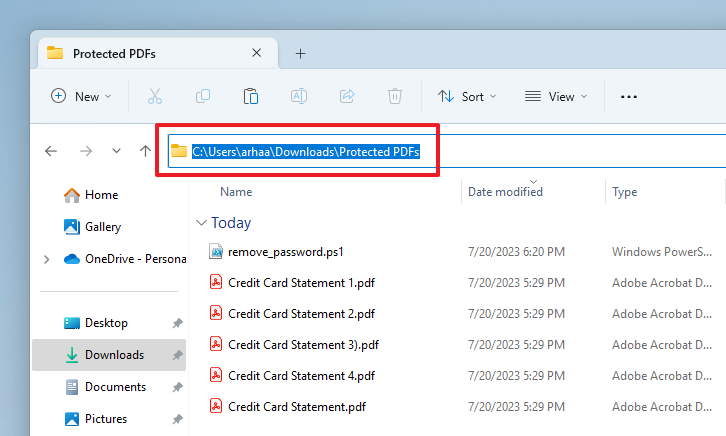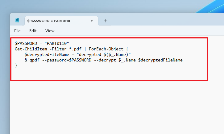Now, you'll create a PowerShell script to remove passwords from multiple PDFs at once.