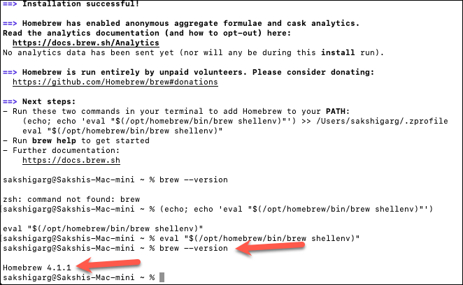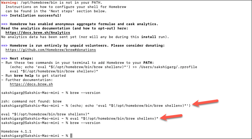 After Homebrew installs, run the following commands to add Homebrew to your path: