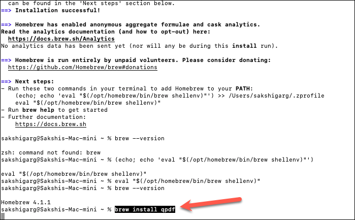Begin by installing QPDF using the Terminal. You'll need Homebrew and Xcode Command Line Tools installed on your Mac.