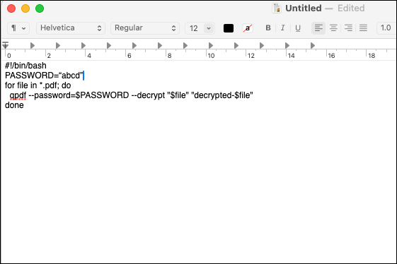 Next, you'll create a bash script to remove passwords from your PDFs.