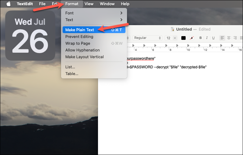 Ensure the file is set to plain text by selecting ‘Make Plain Text’ from the ‘Format’ menu if necessary.