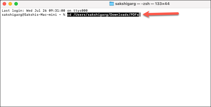 Open Terminal and navigate to the directory containing your PDFs and the bash script using the cd command: