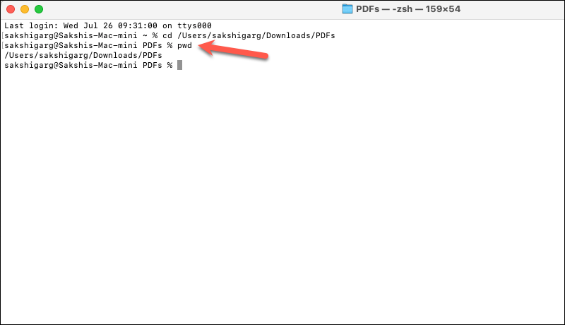 In the terminal, change the directory to where your PDFs and script are located by typing: