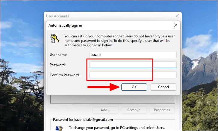 - A new dialog will appear. Enter your account's user name (or email address if it's a Microsoft account) in the User Name field.