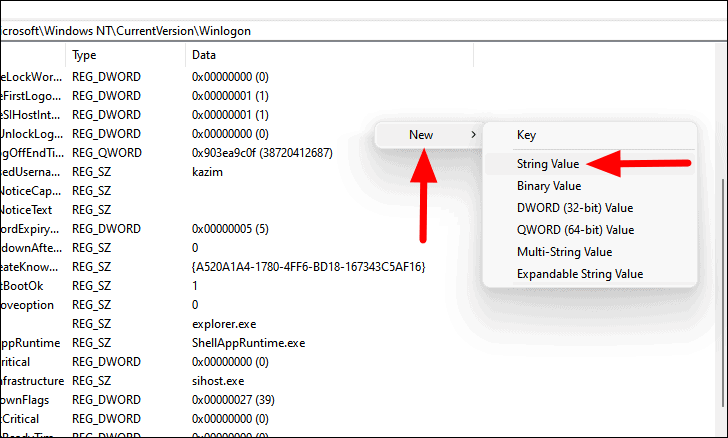 DefaultUserNamestring. If it doesn't exist, create it by right-clicking in the right pane, selecting New, then String Value, and naming itDefaultUserName.