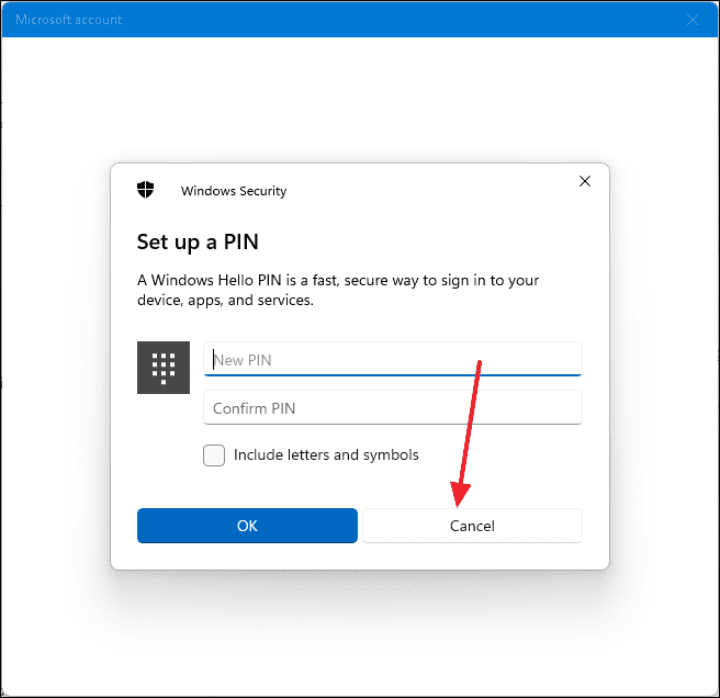 Step 5: When prompted to set up a new PIN, choose Cancel instead of creating one.