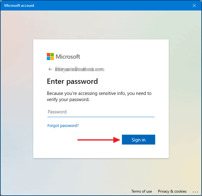 Step 4: Sign in to your Microsoft account by entering your password and clicking Sign in.