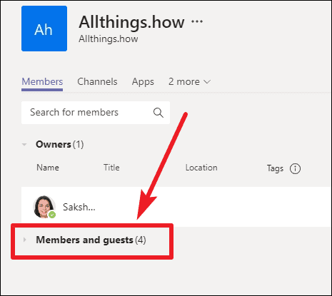 Step 3: In the Manage Team panel, go to the Members tab. If the list is collapsed, click on Members and guests to expand it and view all team members.