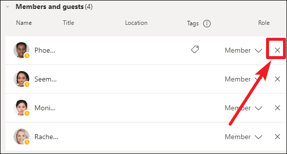 Step 4: Locate the member you wish to remove. Click on the X button next to their name. This action will remove them from the team instantly.