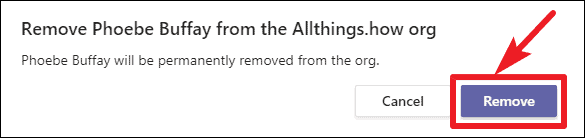 Step 4: A confirmation dialog will pop up. Click on Remove to confirm. This will remove the member from the organization and all teams they were part of.
