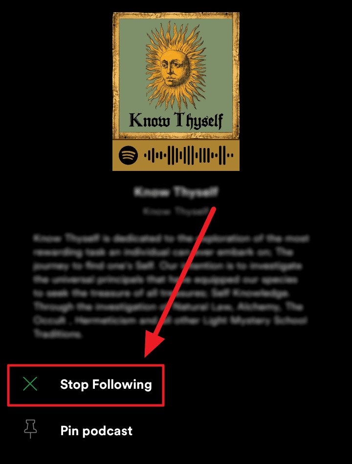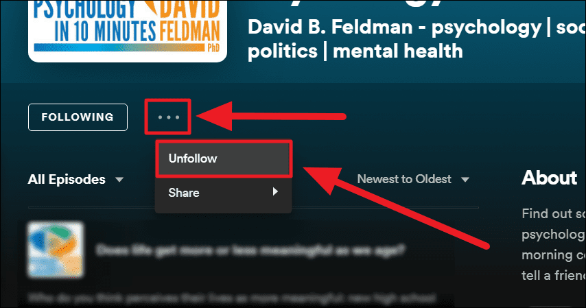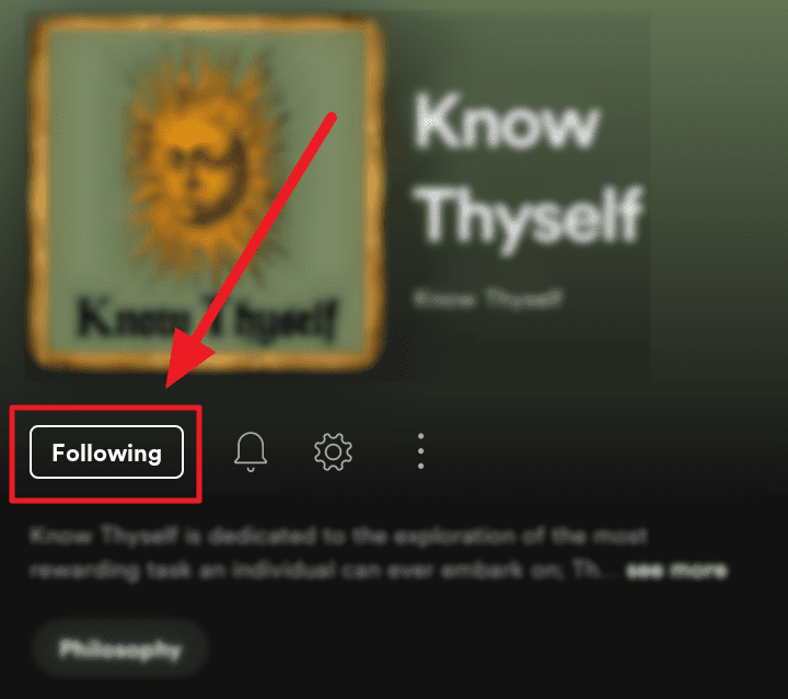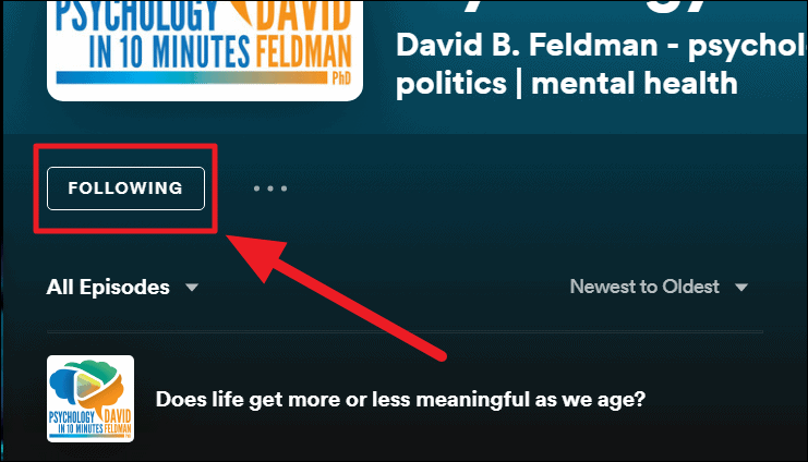 This ‘Following’ button would change to a ‘Follow’ button indicating that you’re not a follower of the chosen podcast/show and that the item is out of your library.
