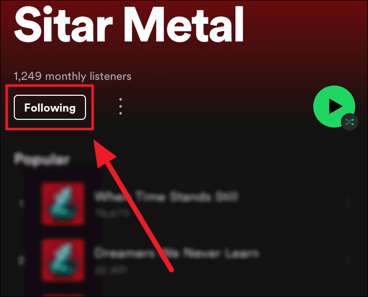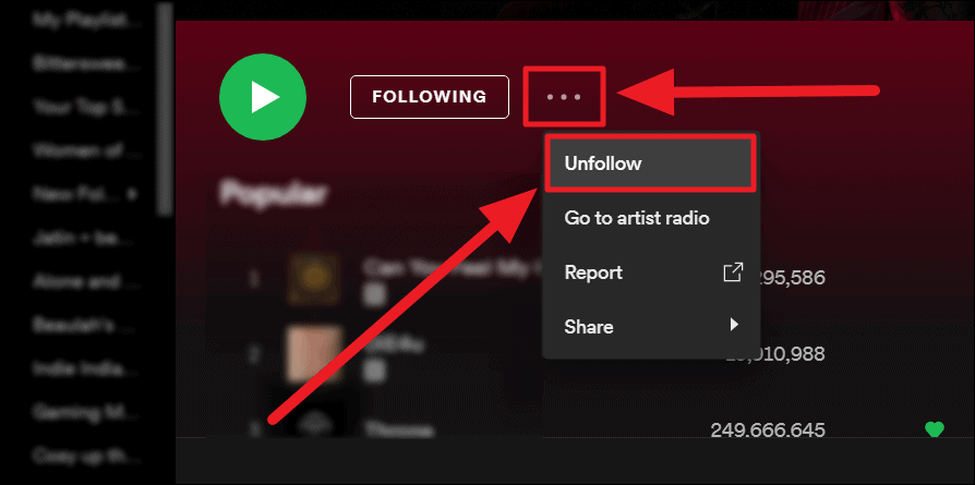 This would turn the button to ‘Follow’ and remove the artist from your library. You will be unfollowing the chosen artist from this point forward.