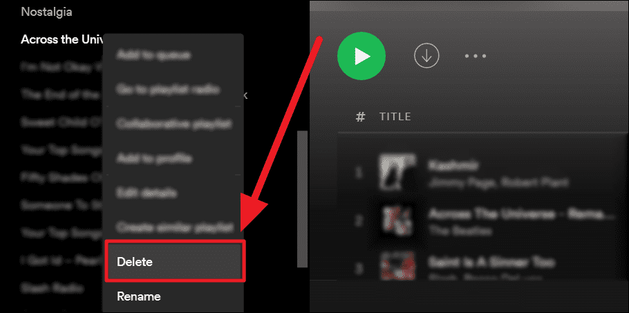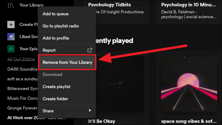Method 1. Launch Spotify on your desktop and double-finger tap or right-click on a playlist on the left. Now, select the ‘Remove from Your Library’ option in the context menu.